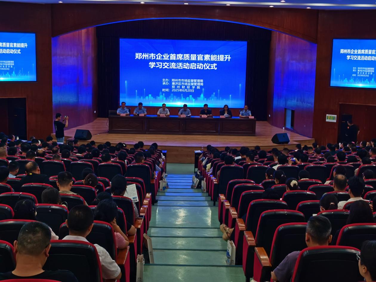2025年6月20日至22日,郑州市2025年第三期首席质量官素能提升学习交流活动在惠济区郑州财经学院圆满举办。本次活动由郑州市市场监督管理局主办,惠济区市场监管局和郑州财经学院承办,惠济区、中原区、二七区、金水区、新密市、登封市及全市荣获河南省“美豫名品”和拟申报“美豫名品”企业共420余家企业参与本次活动。在6月20日开班仪式上,郑州市市场监管局党组成员、副局长陈传建出席活动并做动员讲话。