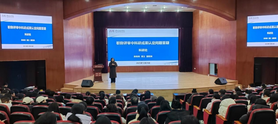 为进一步规范学校职称评审工作,提升全体教师对科研成果认定政策的理解与应用能力,切实解决教师在职称申报过程中因科研成果认定标准不清、材料准备不规范等问题导致的申报困难等问题,12月26日我校科研处在图书馆报告厅成功举办职称评审中科研成果认定问题答疑专题讲座。副校长许玲玲担任主讲人,各教学单位教师代表、拟申报职称教师近500人参加本次讲座。